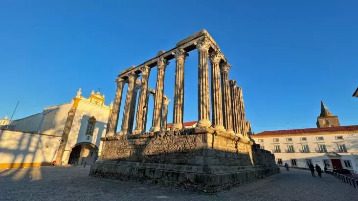Évora está na região de Alentejo, famosa por vinhos. É uma antiga cidade fortificada, a maior parte da época Idade Média e Renascimento (século XVI), quando parte da realeza portuguesa passou a morar na cidade. Mas, há ainda ruínas antigas que datam do século I, da época de ocupação Romana, com mais de 2000 anos. A Catedral, considerada a maior do período Medieval em Portugal, é datada do século 13. Foi inserida no Patrimônio da Humanidade pela Unesco desde 1986